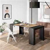 | La mesa consola extensible Skraut Home es una práctica consola y mesa de comedor extensible con múltiples posiciones de montaje. Mecanismo telescópico de aluminio con pata central que da estabilidad a la estructura. La mesa incluye mecanismos de anclaje que fijan y aseguran el montaje en cada una de las posiciones y evita aperturas involuntarias. Consola en acabado roble con veteado de madera poroso de alta calidad. Medidas de la consola cerrada: 90 cm. de Ancho x 58 cm. de Profundidad. Longitud variable: con una extensión 109 cm., con dos extensiones 160 cm. Acoge hasta 8 personas. Extensiones de madera en acabado roble de tacto veteado poroso de alta calidad. |