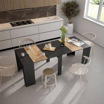 La mesa consola extensible Skraut Home es una práctica consola y mesa de comedor extensible con múltiples posiciones de montaje.