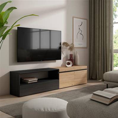 Mueble TV, Televisión, 200x45x35cm, Roble y negro