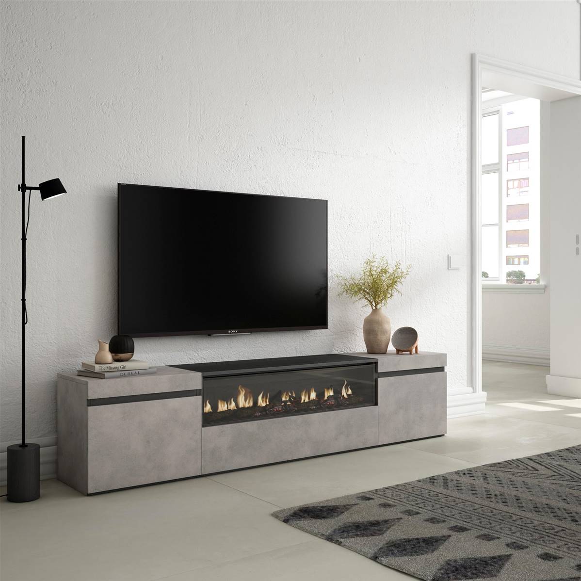 Mueble TV, Televisión, Cemento, Chimenea eléctrica