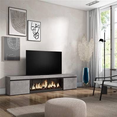 Mueble TV, Televisión, Cemento, Chimenea eléctrica XXL