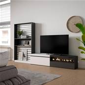 | | Chimenea Eléctrica LED. Medidas: 102cm. de Ancho, 21cm. de Alto. Efecto de fuego 3D increíblemente realista. Sin riesgos de quemaduras, ya que no incorpora ninguna fuente de calor. Potencia: 34w. Inlcuye mando a distancia y 3 niveles de intensidad. Módulo Tv con hueco para almacenar sus dispositivos electrónicos y puerta abatible. Medidas del Módulo: 102cm. de Ancho, 45cm. de Alto, 35cm. de Profundidad. Color negro con veteado de madera de tacto poroso de alta calidad. Módulo Tv con puerta, gran capacidad de almacenaje. Medidas del Módulo: 51cm. de Ancho, 45cm. de Alto, 35cm. de Profundidad. Color blanco sólido mate y negro con veteado de madera de tacto poroso de alta calidad. Estantería decorativa. Medidas: 110cm. de Ancho, 186cm. de Alto, 25cm. de Profundidad. Color blanco sólido mate y negro con veteado de madera de tacto poroso de alta calidad. Paneles de listones de madera, panel pared 3D. Contiene dos paneles de 107x70 cm. |
