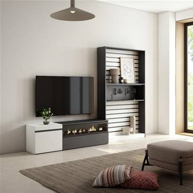 Muebles de Salón para TV, Blanco y negro , Chimenea eléctrica